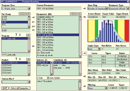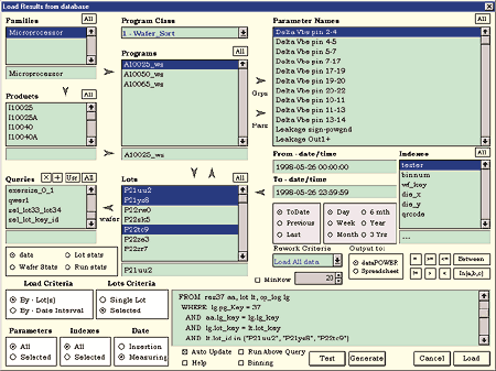 Fast, flexible data retrieval is also essential to efficient data management. Data must be accessible, easily related and quickly retrieved before any analysis can be performed. dataBASE allows you to establish relationships between wafers, lots, products, product families, tests and test programs - before retrieval.